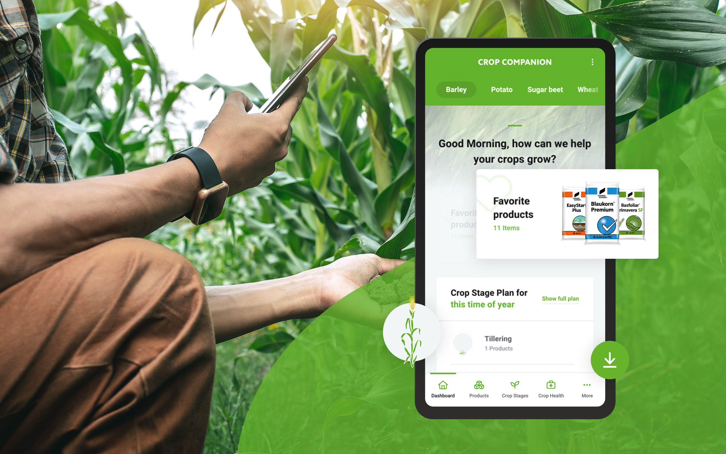 Die Smartphone- & Tablet-Anwendung „Crop Companion” ist eine Cordova App, die im iOS und Google Play Store verfügbar ist. Ihre Inhalte speist sie aus einer REST-Schnittstelle des Drupal-Backends der Corporate Webseite von COMPO EXPERT.